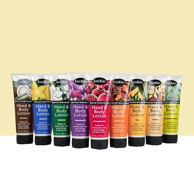 - PREMIUM BOTANICALS: Our hand & body lotions are packed with premium botanicals and come in 9 luscious fruit and floral scents and are made with clinically proven borage oil to moisturize dry skin.