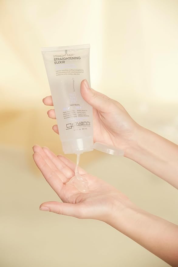 - MOISTURIZING SCALP CARE: GIOVANNI's Straight Fast Straightening Elixir smooths curls, relaxes waves, and helps control even the unruliest of hair. This lightweight crystal-clear gel adds silky shine while repelling humidity.
