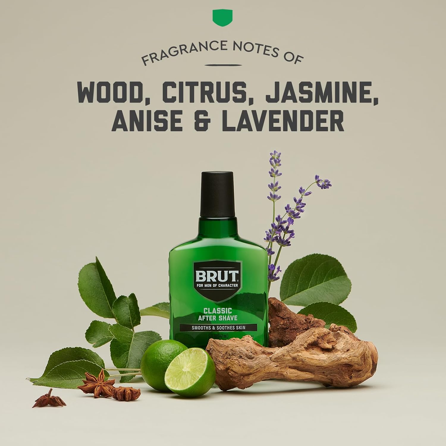 - BOLD, MASCULINE FRAGRANCE. With the classic masculine BRUT fragrance of spicy wood, florals, and citrus notes, this scented after shave for men is designed for individuals who want to smell unique and fresh, all day long.
