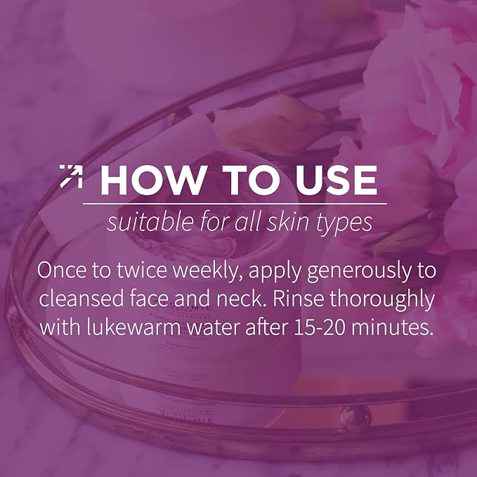 - APPLY TO FACE/NECK, RINSE AFTER 15 MINUTES: Once to twice weekly, apply generously to cleansed face and neck. Rinse thoroughly with lukewarm water after 15-20 minutes