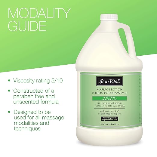 Bon Vital' Naturale Massage Lotion with Natural Ingredients for Earth-Friendly Massage, All Natural Moisturizer, Relieves Muscle Soreness and Increases Circulation, 1 Gal, Label may Vary