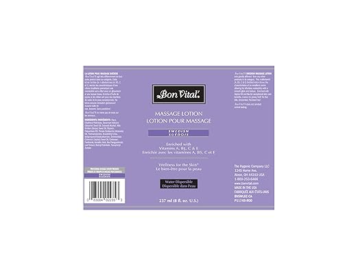 Bon Vital' Swedish Massage Lotion for Skin Tone Improvement, Dry Skin Repair, Increased Circulation, and Stress Relief, Great for Massage Therapists Who Perform Swedish and Sports Massages, 8 Oz