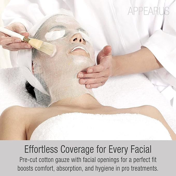 APPEARUS Pre-Cut Gauze Facial Masks – 100% Cotton, Breathable & Soft – Ideal for High Frequency, Mud, Clay, and Paraffin Treatments – Spa & Esthetician Use – 100 Count (DM101)