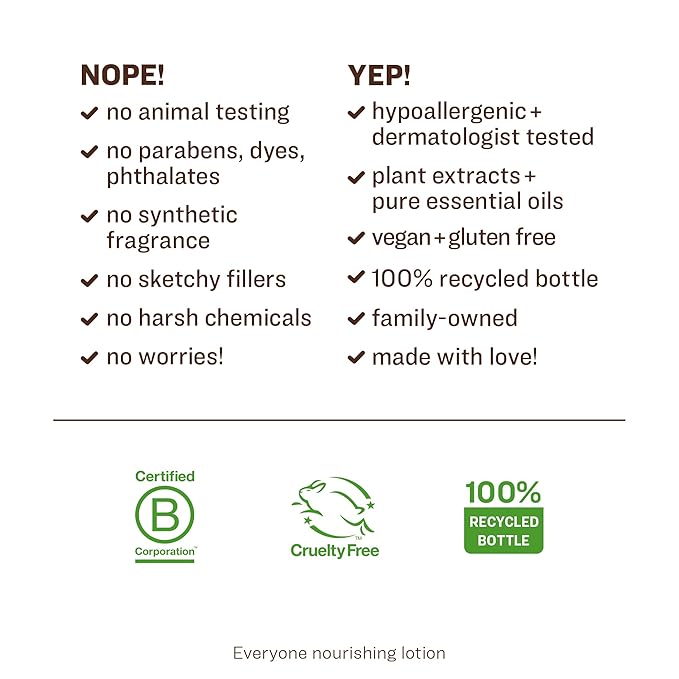 - Clean Promise: Everyone Nourishing Lotion is EWG verified, GMO free, cruelty free, gluten free, paraben free, triclosan free, and synthetic fragrance free
