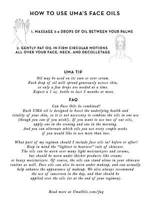 - WHAT IT IS - UMA Beauty Boosting Day Face Oil is crafted lovingly with nature's best ingredients