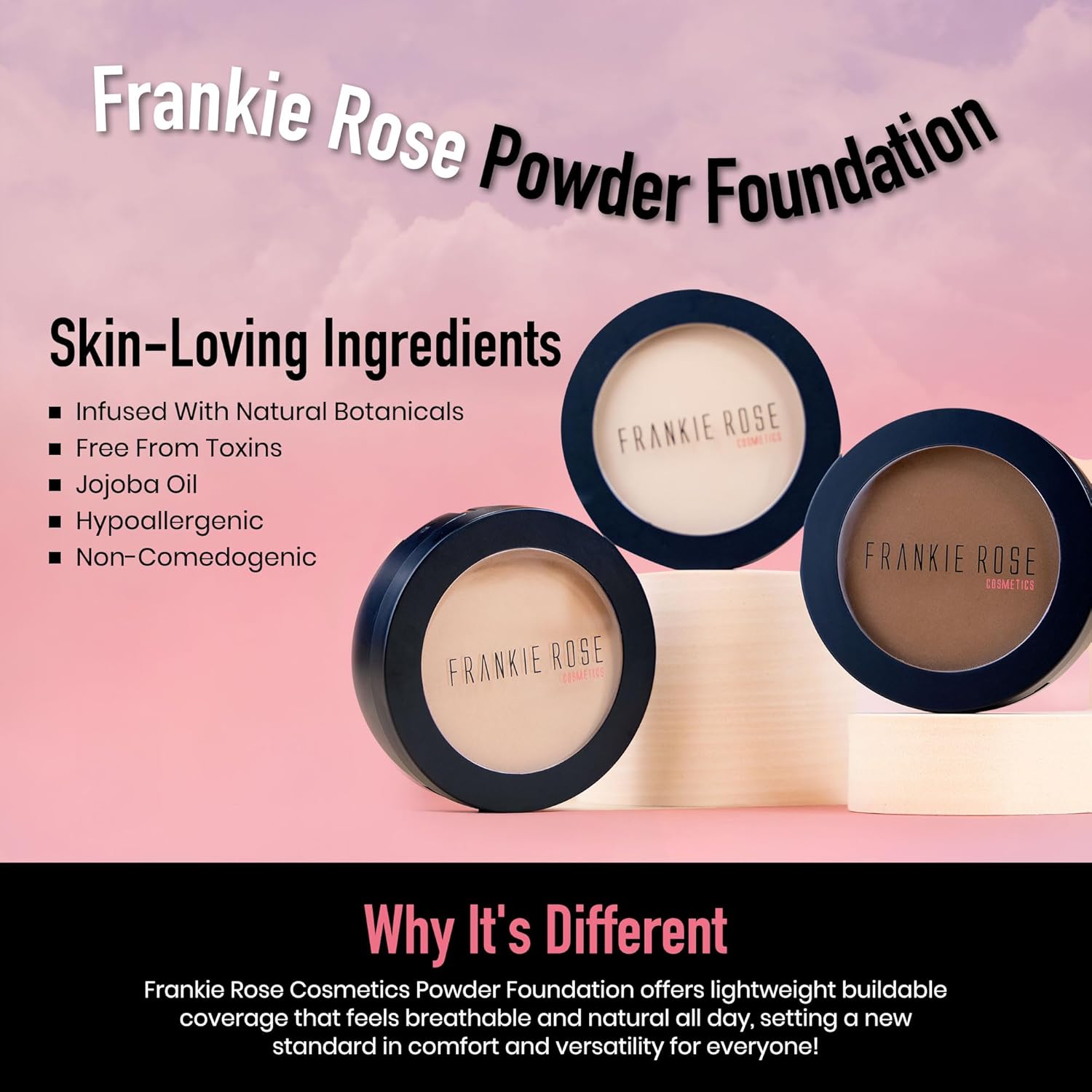 - FOR ALL SKIN TYPES: Frankie Rose lightweight face powder is formulated to transform your skin to smooth perfection. This fine makeup powder is great for all skin types, oily, sensitive, dry, combination, or normal.