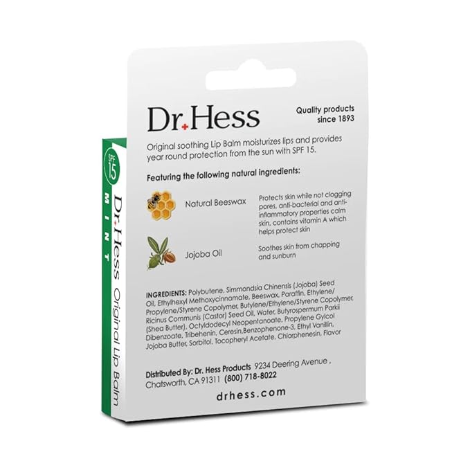 - Immediate Relief for Chapped Lips: Our Udderly Soothing Lip Balm, based on the original Dr. Hess healing formula, is specifically designed to help provide instant relief for dry to severely chapped lips; Enriched with Jojoba, Beeswax, and Shea Butter, and Paraffin, it effectively moisturizes and nourishes your lips, leaving them smooth and protected