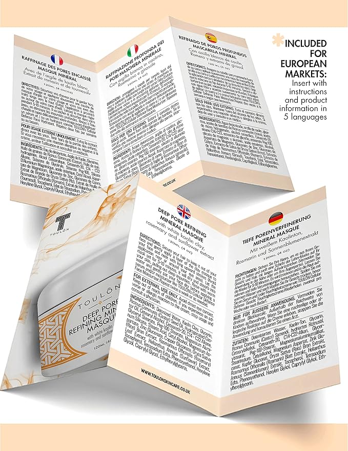 TOULON Kaolin Clay Mask for Face with White Kaolin Mineral Clay. Soft Pure Healing Mask with Minerals to Reduce Wrinkles and Blackheads & Detox Skin - Improve Complexion for Women or Men