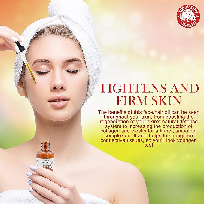 - TREAT MULTIPLE SKIN CONDITIONS: Our tomato seed oil is nature’s own remedy for your skin, particularly for fine lines, deep wrinkles, stretch marks, and age spots. This natural facial oil supports amazing health benefits for both men and women and can also be used to treat acne, dry and cracked skin, chapped lips, cellulite, eczema, or psoriasis.