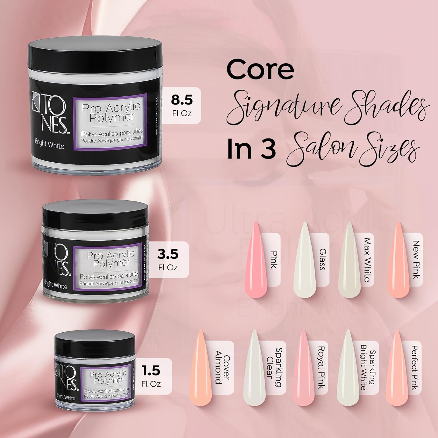 Tones Pro Acrylic Nail Powder, Sparkling Bright White (Opaque Off-White), (1.5 Fl Oz) - Long-Lasting & Non-Yellowing Polymer for Salon Quality Nail Extensions & 3D Art