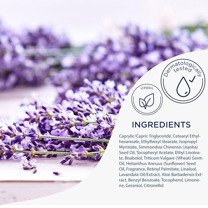 - HIGHLY EFFECTIVE INGREDIENTS: Natural oils are proven to smooth the skin and retain its natural moisture. The oil is quickly absorbed and leaves the skin feeling supple. With a calming lavender scent.