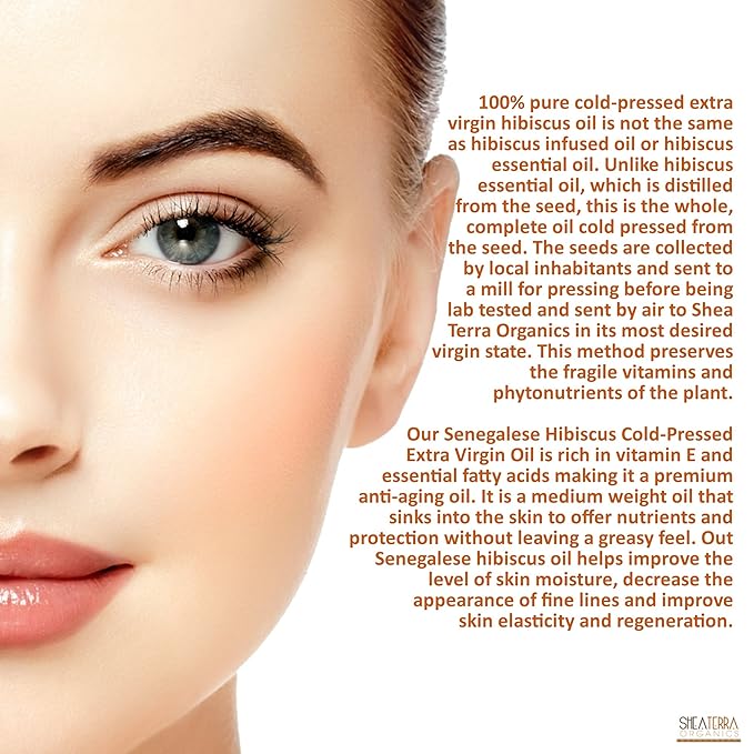 Shea Terra Organics Senegalese Hibiscus Cold Pressed Extra Virgin Oil | Hair Conditioner, Anti-Aging, Vitamin E Oil | Dry/Mature Skin Types - 2 oz