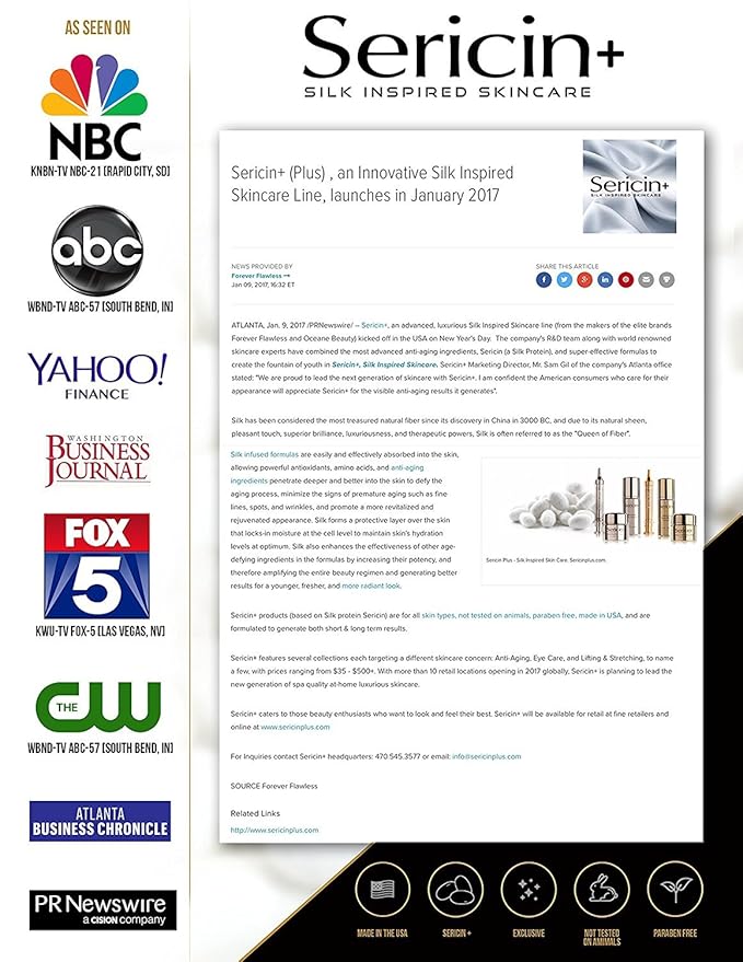 - 💎 INNOVATIVE - At Sericin+ we have combined years of Research & Development, cutting-edge laboratories, the most advanced anti-aging ingredients, and super-effective formulas developed by skincare specialists, to discover the fountain of youth in Sericin+, Silk Inspired Skincare.