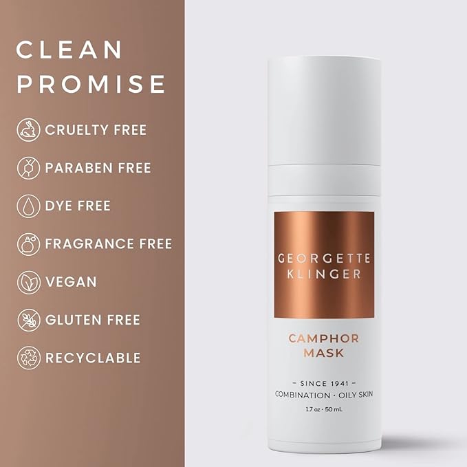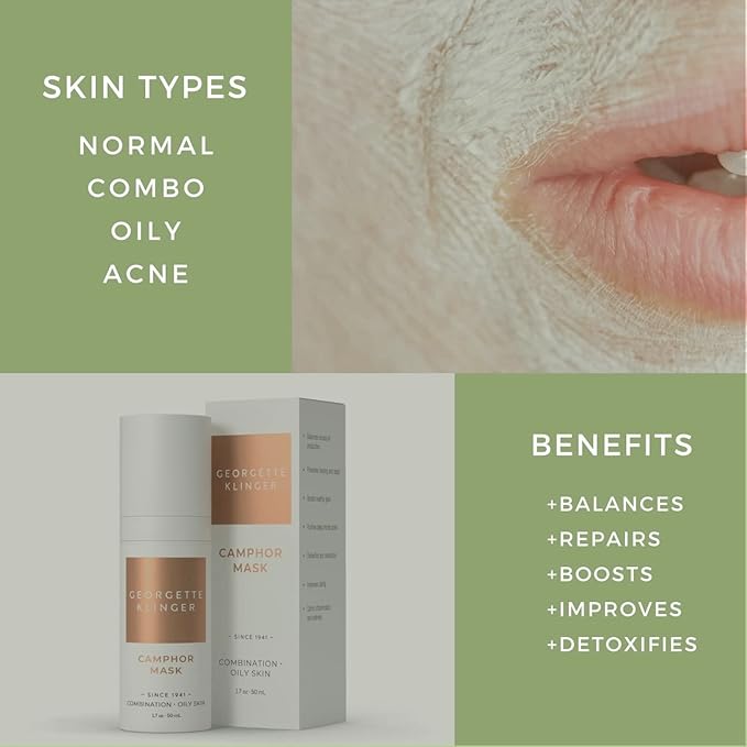 Georgette Klinger Camphor Mask - Mineral-Rich Clay Mask with Menthol & Vitamin E: Detoxify, Exfoliate, and Improve Skin Tone while Absorbing Excess Oil, and Clearing Clogged Pores - 1.7 oz