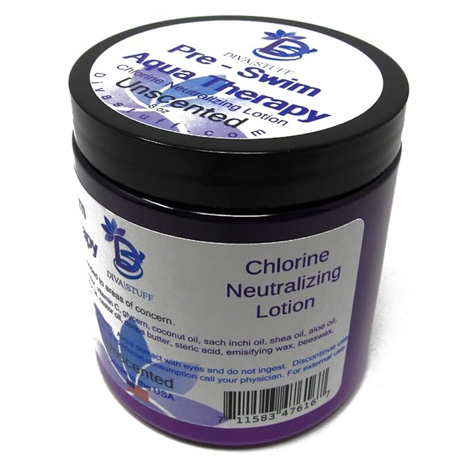 Diva Stuff Pre-Swim Aqua Therapy Chlorine Neutralizing Body Moisturizing Lotion for Swimmers, Protects Skin from Chlorine & Salt Water, 8 oz - Made in the USA, Unscented