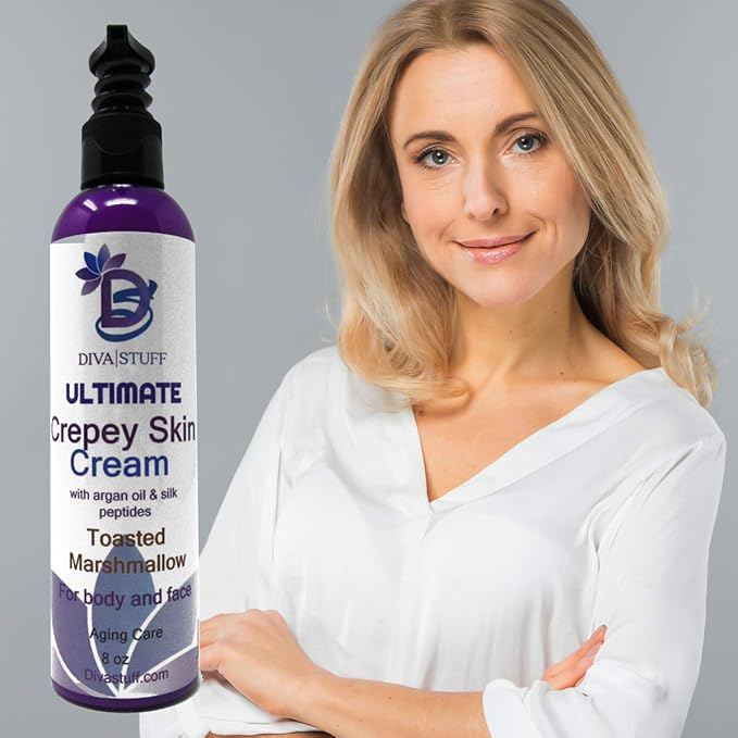 Diva Stuff Ultimate Crepey Skin Body & Face Cream with Hyaluronic Acid, Argan Oil, Silk Peptides and more for Dry & Damaged Skin, 8oz - Toasted Marshmallow Scent (Made in the USA)