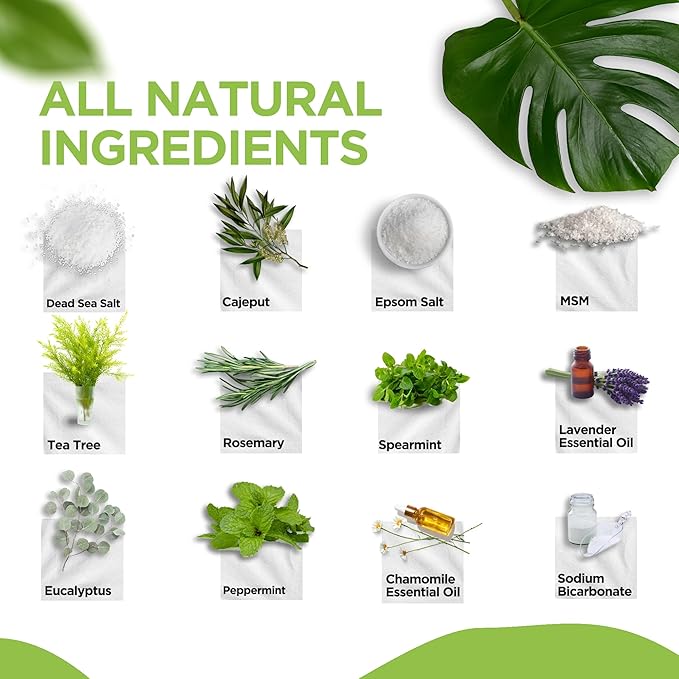 - 🌿 UNIQUE PROPRIETARY BLEND FORMULA - Daily Remedy’s foot soak is a premium blend of epsom salt (magnesium), sea salt, tea tree oil, eucalyptus, peppermint, cajuput camphor, rosemary, lavender, MSM and essential oils. Just what your feet need after an exhausting day at work or school