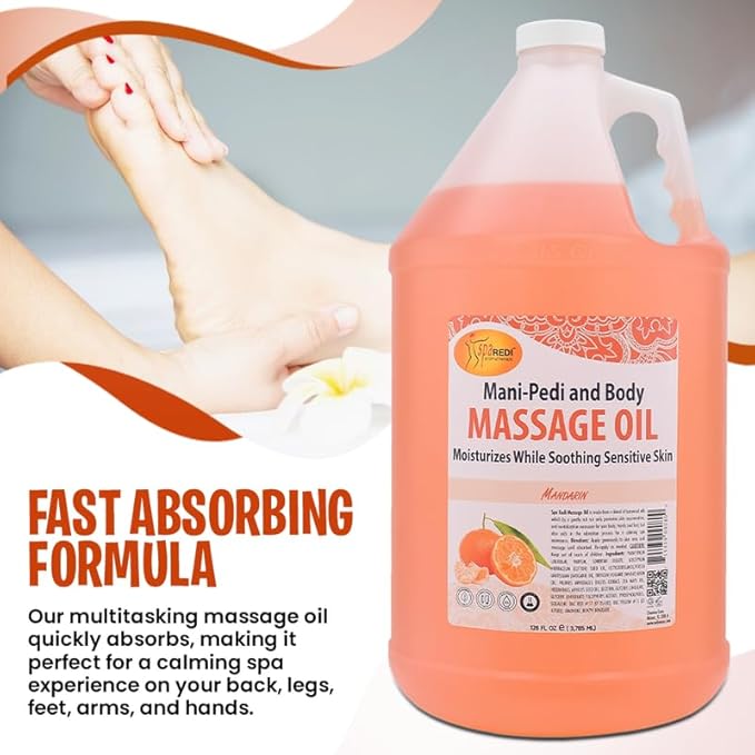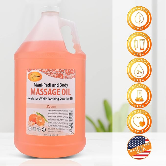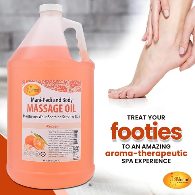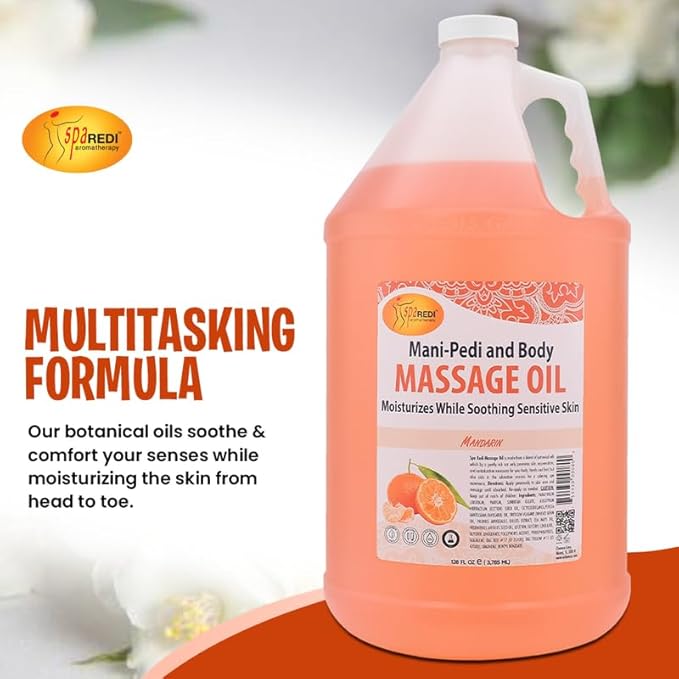 SPA REDI - Mandarin Scented Massage Therapy Oil, 128 Oz - Full Body Massage, Almond, Cotton Seed, Sunflower, Avocado & Essential Oils, Vitamin E