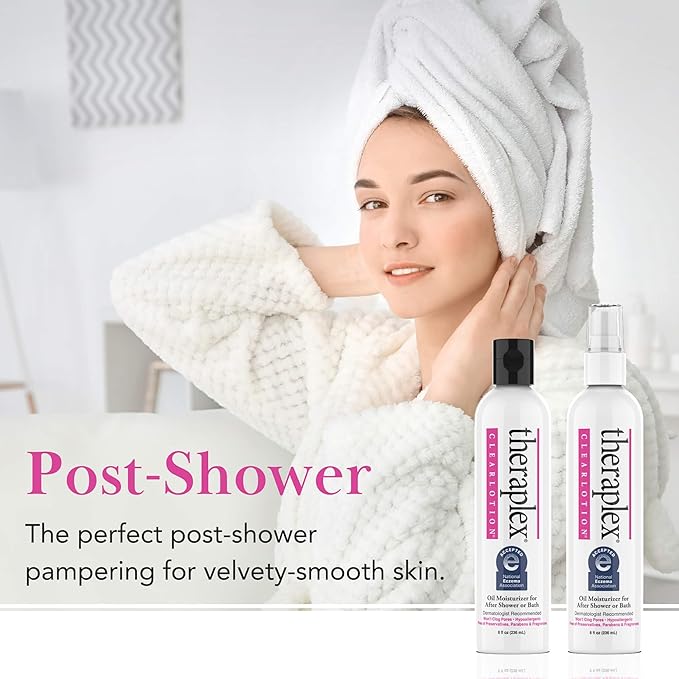 - PRODUCT INFORMATION: Theraplex Clear Lotion is a light, fast & penetrating emollient oil which is ideal for use after showering or bathing. When applied to damp skin, the clear lotion seals in moisture, replacing natural oils that water and soap can strip away.