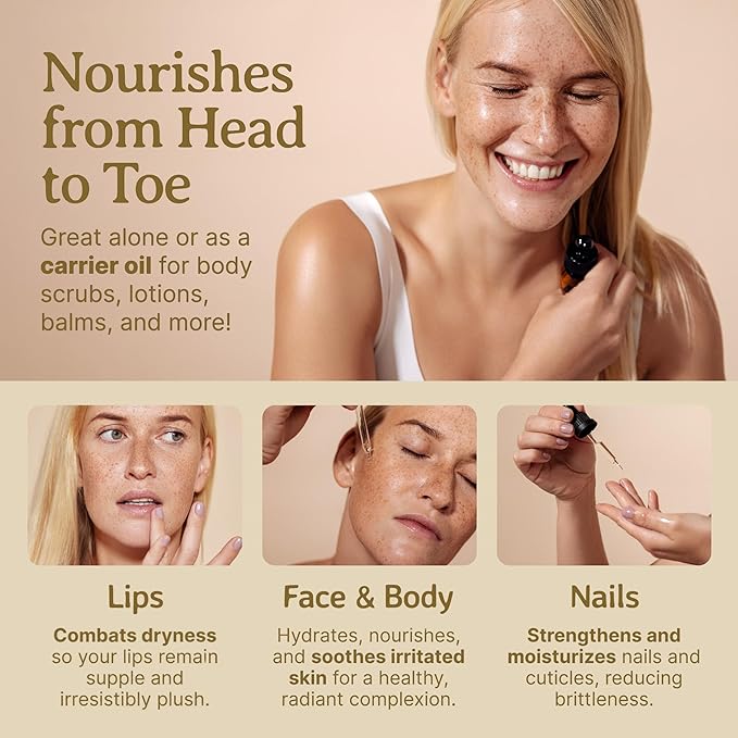 - ✔️ [Skin’s Radiant Companion]: Transform your face with this oil, a vitamin E enriched elixir, for a radiant, glowing complexion.