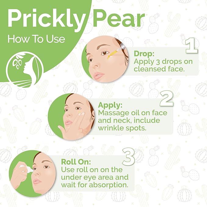 - ONE SUPER INGREDIENT : Prickly Pear Seed Oil (Barbary Fig Oil, Cactus Seed oil, Indian Fig Oil) , with 2 cap types included, USDA and ECOCERT Certified Organic, 100% pure, virgin, cold pressed, unrefined, fast absorbing | packaged in a painted glass bottle to protect the oil from sunrays, with a stainless steel roll on ball for hygiene, economy of this precious oil and ease of use under the eyes and on the wrinkles | sustainably & ethically sourced from Berber women in Moroccan Cooperative