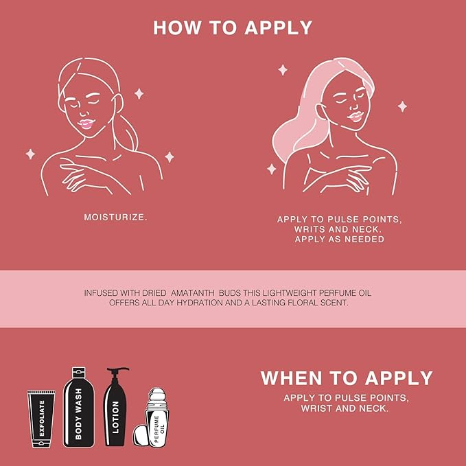 | Amaranth Refreshing Lightly Scented Floral Roll-On Perfume Body Oill - Body Oils for Women Perfume - Enriched w/Apricot Oil, Sweet Almond Oil, Fractionated Coconut Oil - 1OZ