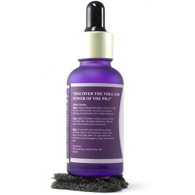 Pure Pili ORGANIC Pili Oil For Skin, Hair, Face, Nails, Beard & Cuticles -100% Volcanic Enriched Anti Aging, Anti Wrinkle, Cold Pressed Moisturizer, 30 ml