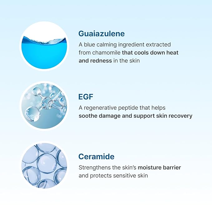 - CALMING & SOOTHING CREAM: Experience instant relief with our gentle cream, featuring star ingredients like Guaiazulene, extracted from Chamomile Oil, for powerful calming effects. Plus, Centella Asiatica hydrates and soothes, perfect for healing damaged skin and reducing redness.