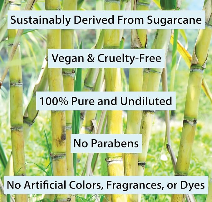 - 100% Plant Derived (from sugarcane); Vegan & Cruelty-Free; Non-irritating, non-comedogenic, and suitable for all skin types, including dry, sensitive, oily, and acne-prone.