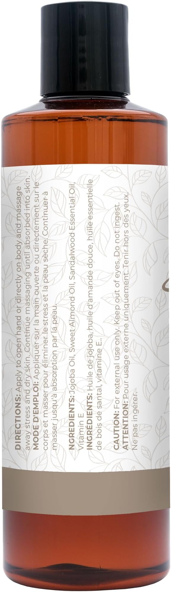 Sandalwood Massage Oil, Made with Jojoba, Vitamin E and Pure Sandalwood Essential Oil, Natural Body & Mind Relaxation, Aromatic