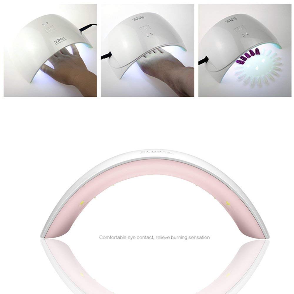 - Sun9C (Plus) is one of the most classic Nail Dryer - arch shape, open & light weight designed, can cure 5 fingernails or toenails simultaneously 36W -18LEDs, 2X faster curing than some others nail dryers, save more time.