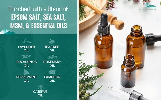 - OUR GUARANTEE – Our Tea Tree Soak is Formulated with Extra Strength Essential Oils and Contains NO Synthetic Fragrances or Dyes. We use US Pure Epsom Salt and Sea Salt which has been Optically Cleaned from Australia - Made in the USA – Not Tested on Animals – 100% SATISFACTION GUARANTEE