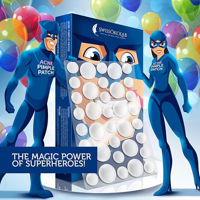 SWISSÖKOLAB Acne Patch Pimple Patch Hydrocolloid Acne Stickers Absorbing Spot Dot Acne Cover 144 Acne Dots Pimple Sticker Acne Pimple Master Patch Blemish Patches