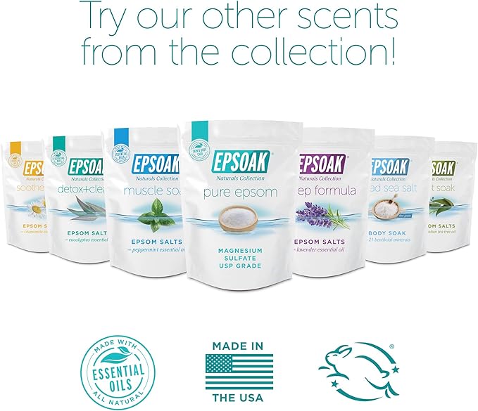 - AT-HOME BATH & FOOT SPA: Add the nourishing effects of Epsom Salt to your daily bath with the Epsoak Epsom Salt (100% Pure Magnesium Sulfate), a USP-grade GMO-free expertly selected medium-grain bath salt to easily meet your body's magnesium needs