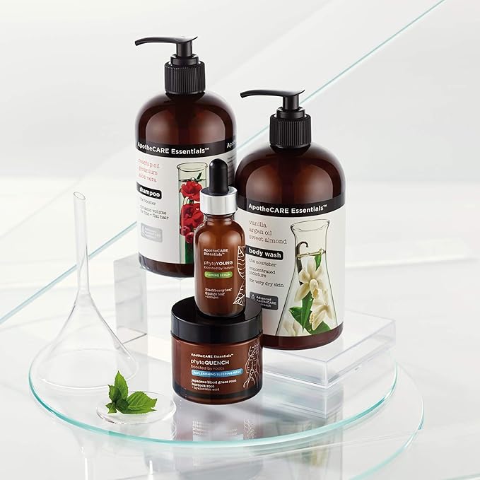 - Boosted by: Blackberry Leaf, Ginkgo Leaf and infused with collagenApotheCare Essentials captures the essence of leaves into advanced formulas for younger looking skin.