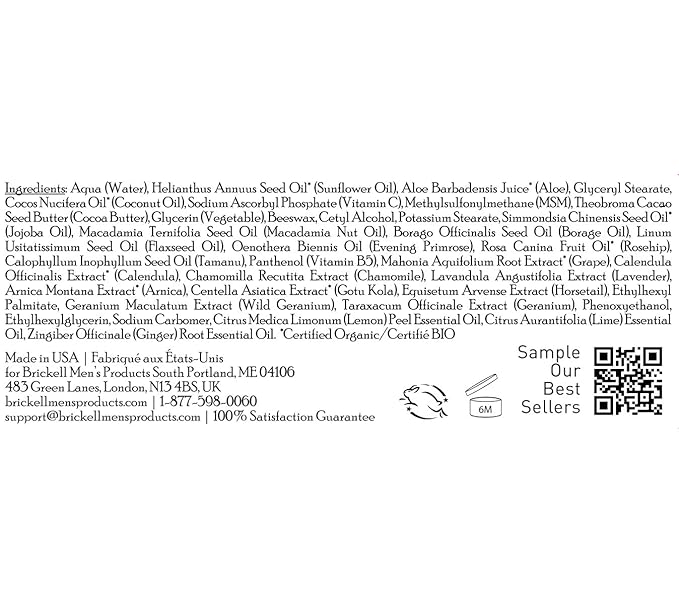 - Key Ingredients: Natural & Certified Organic ingredients, including Vitamin C, Borage Oil, MSM, aloe vera, and sunflower oil.