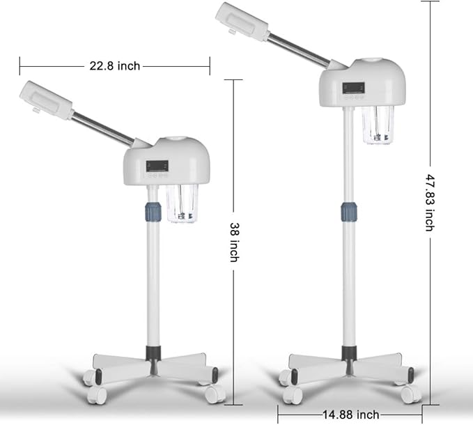 - Adjustable Height & 360° Rotatable Nozzle: The adjustable height(38"-47.83") and 360° rotating nozzle allows you to complete your facial spa at multiple angles and heights conveniently. Place the sponge in the aromatherapy cartridge at the nozzle, drop in the aromatherapy oil and enjoy your aromatherapy spa.