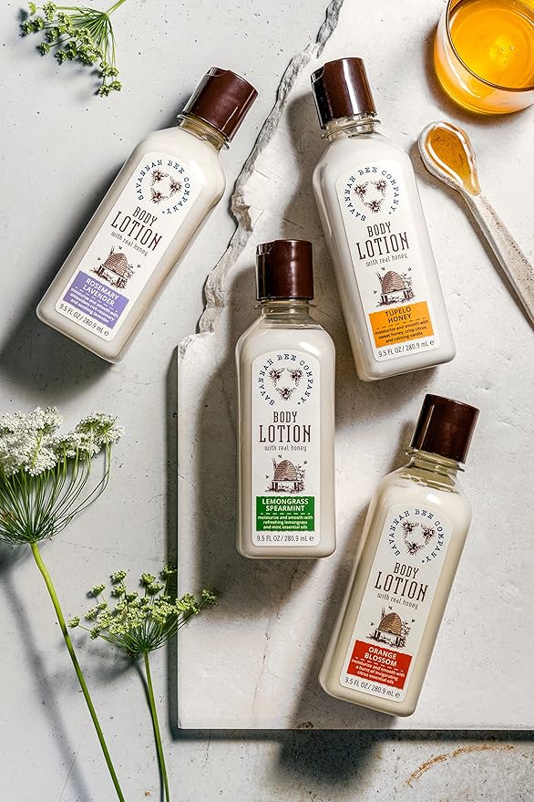 - ALL NATURAL - Indulge your skin with Savannah Bee Company's all natural body lotion collection featuring 4 unique flavors, orange blossom, rosemary lavender, tupelo honey, and lemongrass spearmint.