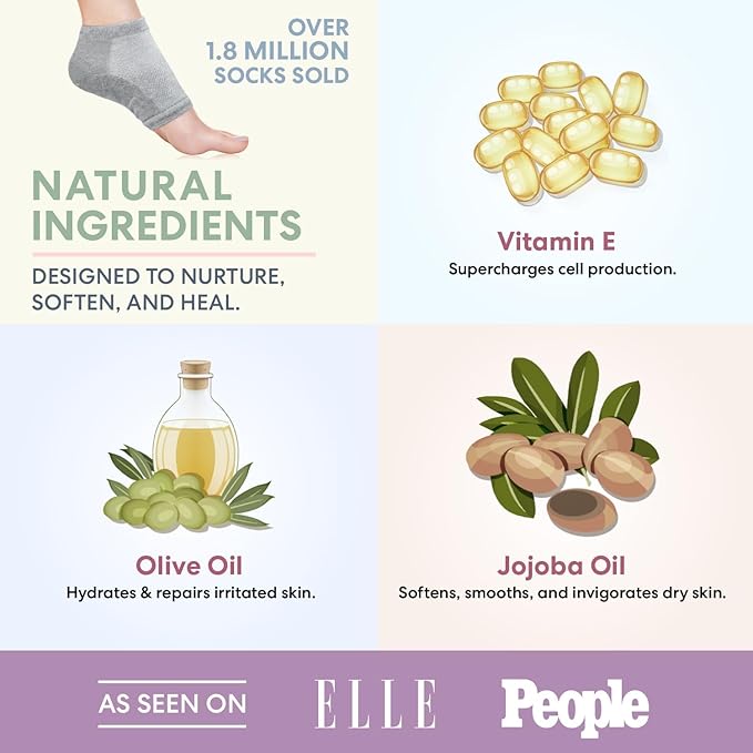 - Gel Lining Locks in Healing Moisture: Want to know our secret? The gel lining in our heel socks helps to trap moisture, allowing hydration and repair while you sleep. For more damaged heels or faster results, follow our recommended dream foot care routine: soak your feet, lather on lotion, and wear your socks all night long for the first 7 days. If you plan to wear the socks during the day, just skip the lotion to avoid slippery heels.