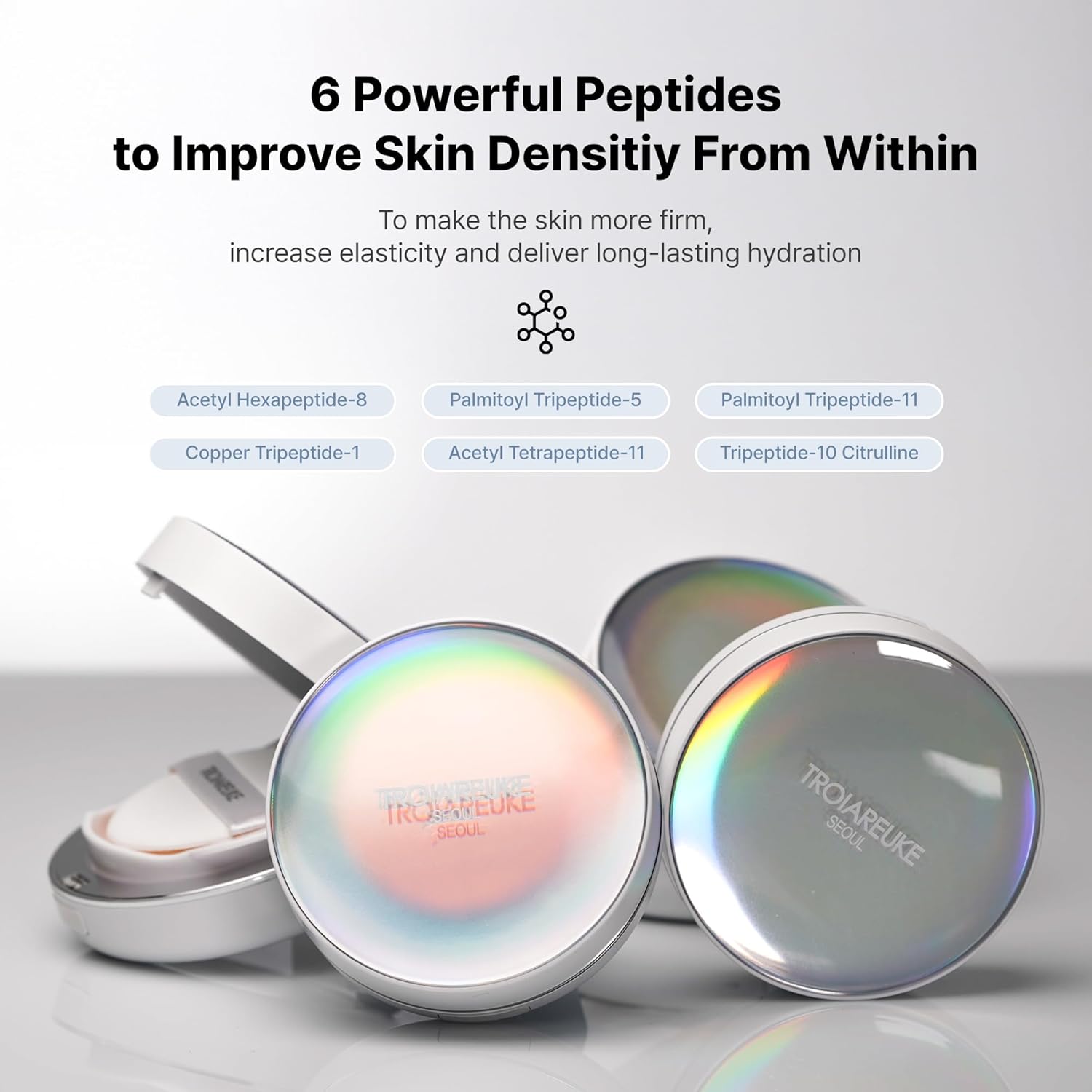 TROIAREUKE Seoul "Bridal" Cushion Foundation(#21, Pink Beige), Korean Cushion Foundation, K-Beauty, Hydrating, Long-lasting, Lightweight, Natural Finish, Anti-Aging, Moisture, Whitening, SPF 50+