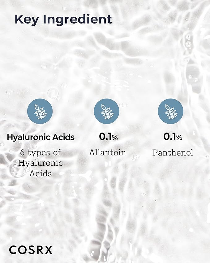 - Key Ingredient: 6 types of Hyaluronic Acids, 0.1% Allantoin, 0.1% Panthenol