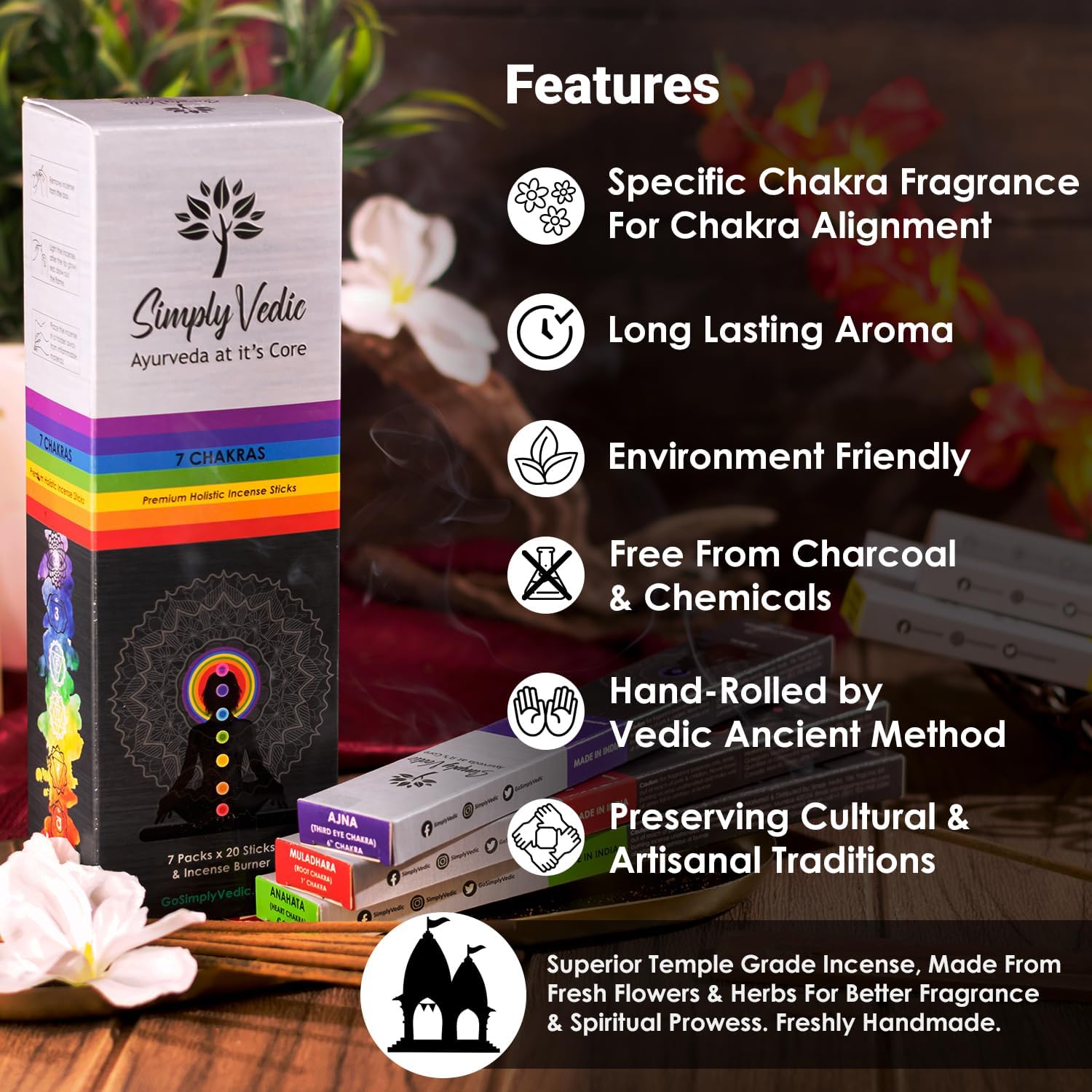 - ✅ Align & Awaken Your Chakras Naturally: Each Simply Vedic Chakra Incense Stick is expertly blended to target one of the 7 energy centers—Root, Sacral, Solar Plexus, Heart, Throat, Third Eye, and Crown. Perfect for chakra alignment, spiritual awakening, and inner balance during yoga, meditation, or reiki practice.