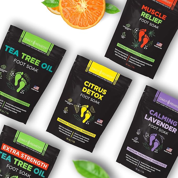 - Revitalize and Detoxify with Nature's Best: Immerse your feet in our citrus epsom salt foot soak, a perfect blend of natural Epsom Salt and Dead Sea Salt infused with a potent mix of MSM and essential oils like Tea Tree, Eucalyptus, Peppermint, Cajuput, Camphor, Rosemary, Coconut Oil, Lemon, Ginger, Lavender, Geranium, Vitamin C, and Vitamin E. Ideal for those seeking a foot detox or body detox foot soak experience.