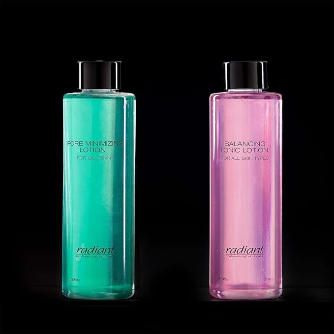 - Radiant Professional Pore Minimizing Tonic Lotion is a face toner ideal for oily or acne prone skin. It contains a complex of yeast proteins, extract of a unique variety of mushrooms, rosemary water along with extracts from the root of the Imperata Cylindrica plant, to balance oiliness and firm visible skin pores, without de hydrating the skin.