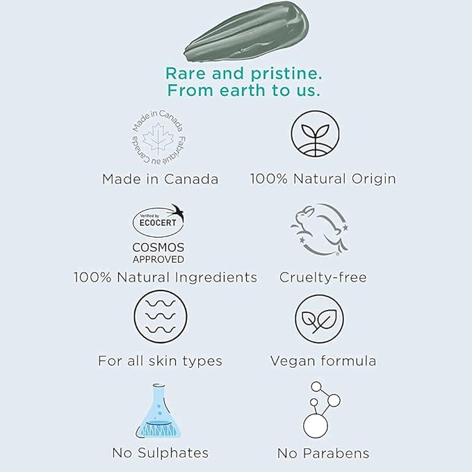 - 100% NATURAL GLACIAL OCEANIC CLAY UNIQUE TO CANADA : our clay is sourced uniquely from British Columbia, Canada where glaciers melted with the ocean, nowhere else in the world. Enriched by the continuous flow of ocean and glaciers, the clay has absorbed more than 60 minerals and skin-nourishing elements to promote healthy skin.