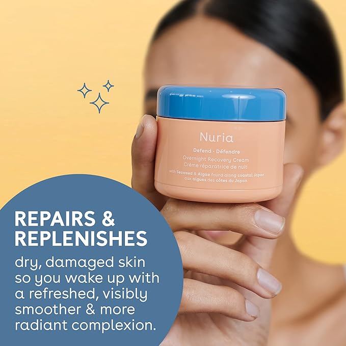 Nuria - Defend Overnight Face Cream, Facial Moisturizer for Nighttime Skin Recovery, Night Cream for Face with Seaweed, Brown Algae, and Aloe Leaf Juice, 50mL/1.7 fl oz