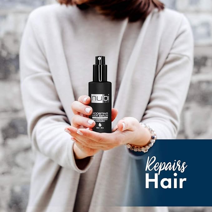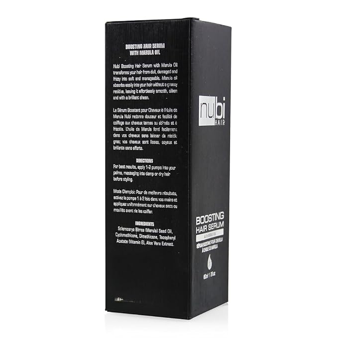 - CONTROLS FRIZZ & FLYAWAYS - The Nubi Boosting Marula Hair Serum helps manage unruly strands and reduces frizz, leaving hair looking smooth throughout the day. It also gives a nice shine and is non-greasy.
