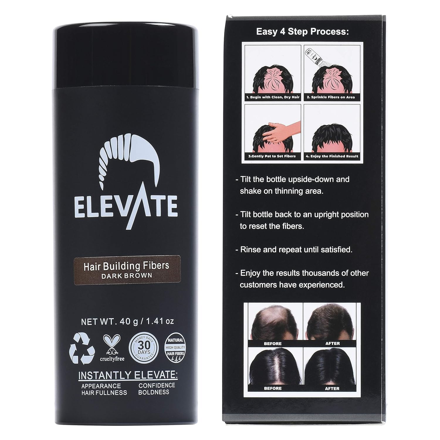- INSTANT THICKER FULLER HAIR IN SECONDS: Elevate Hair Building Fibers give you the immediate appearance of thicker, fuller hair.