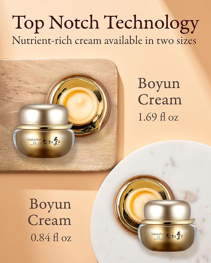 - SOORYEHAN BOYUN CREAM SKINCARE SET (155ml/5.2fl oz) - Elevate your skincare experience with our deluxe set, showcasing the lavish Boyun Cream in 2 sizes (50ml/1.7fl oz + 25ml/0.8fl oz). This collection also includes travel-sized versions of Boyun Emulsion (20ml/0.7fl oz), Boyun Toner (20ml/0.7fl oz), and Ginseng Cleansing Foam (40ml/1.4fl oz).