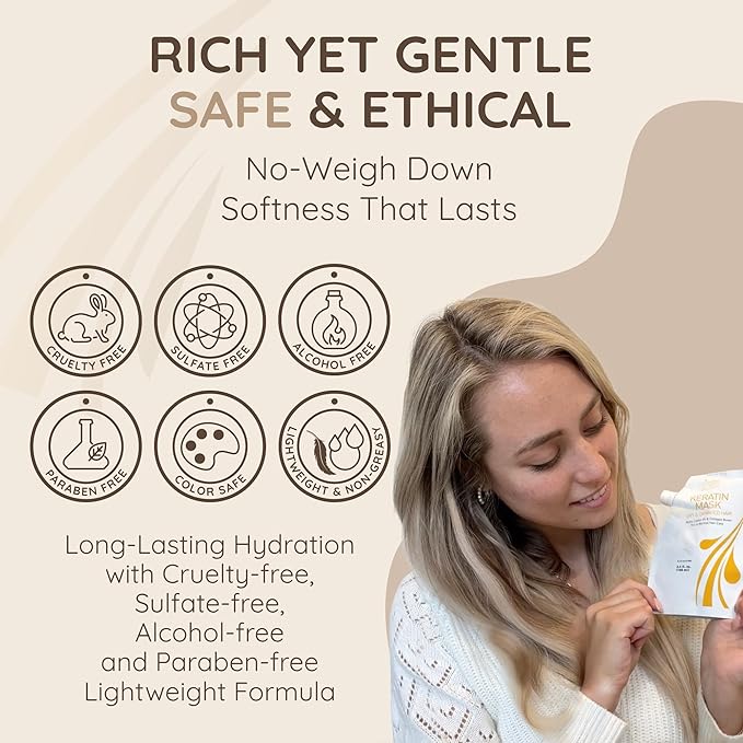 - Product Benefits : Strengthening, Hydration, Softness, Shine, Anti Frizz, Breakage Repair, Frizz Control, Curl Control